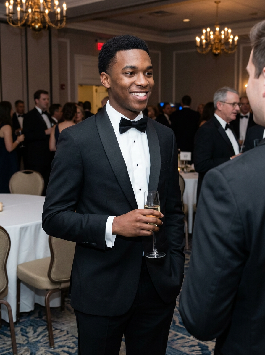 an elegant masculine model attending a formal event