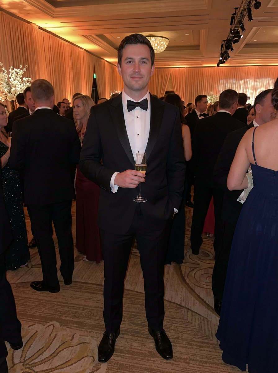 an elegant masculine model attending a formal event