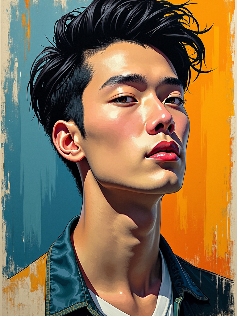 Artistic portrait of model in cubist style. Fragmented perspective, bold lines. Picasso-inspired artwork.