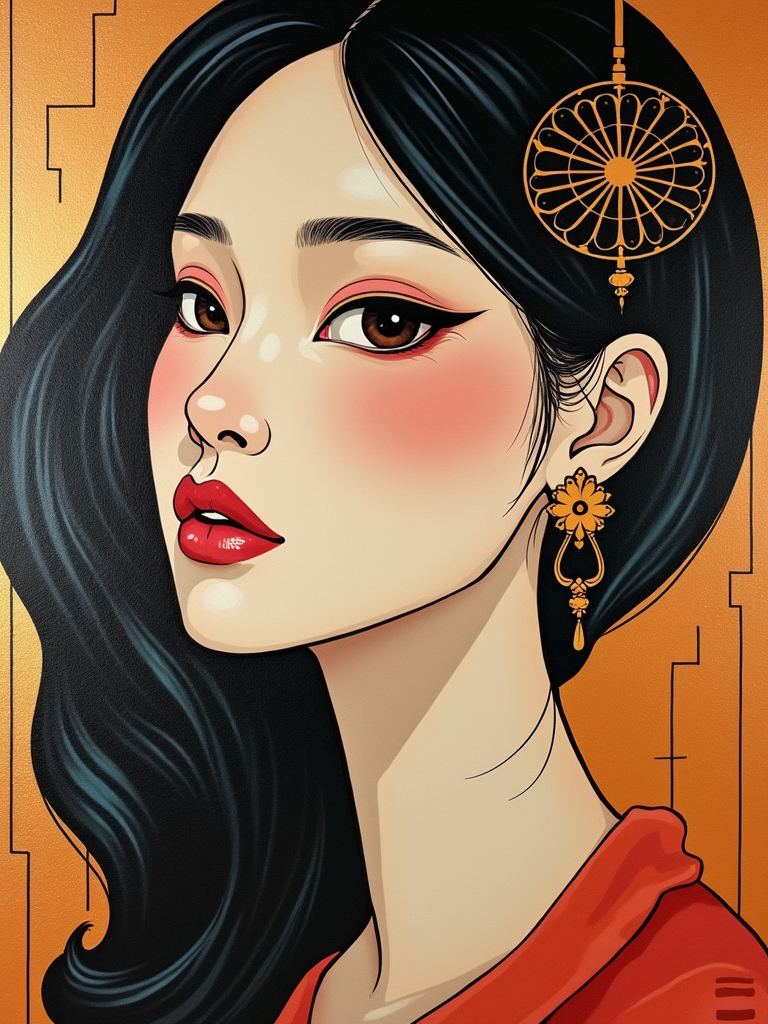 Artistic portrait of model in cubist style. Geometric shapes, abstract forms . Picasso-inspired artwork.
