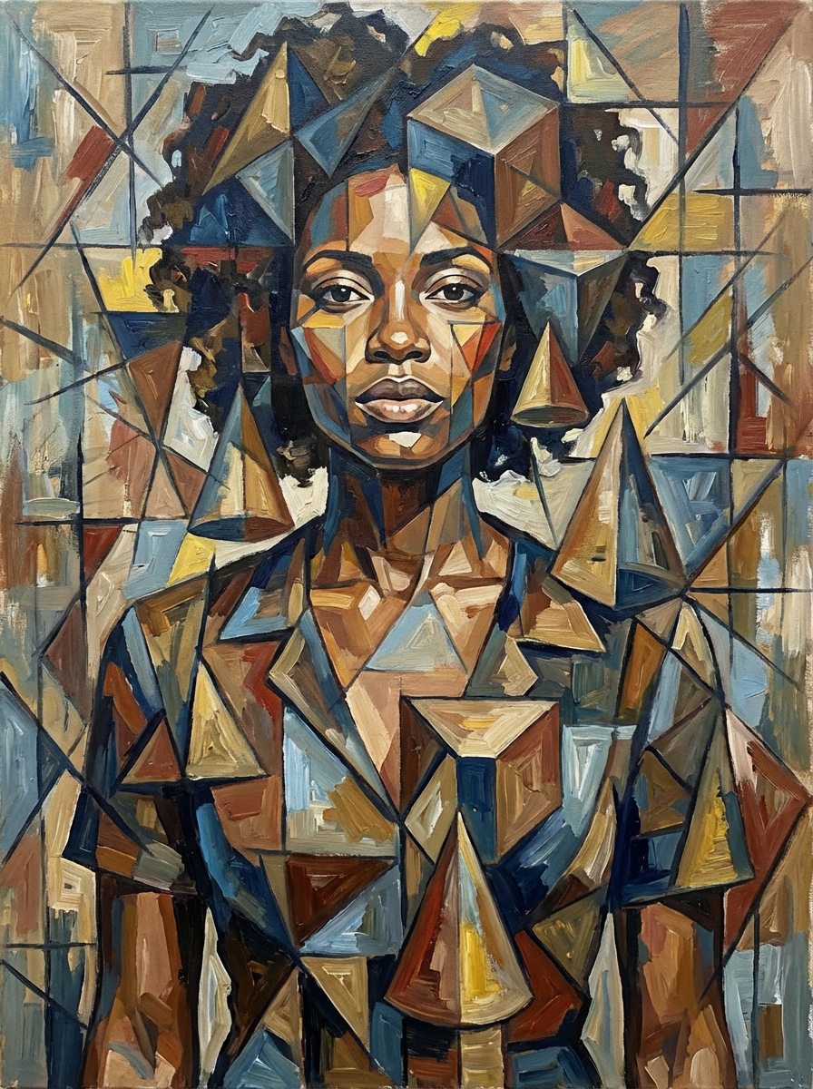 Artistic portrait of model in cubist style. Geometric shapes, abstract forms . Picasso-inspired artwork.