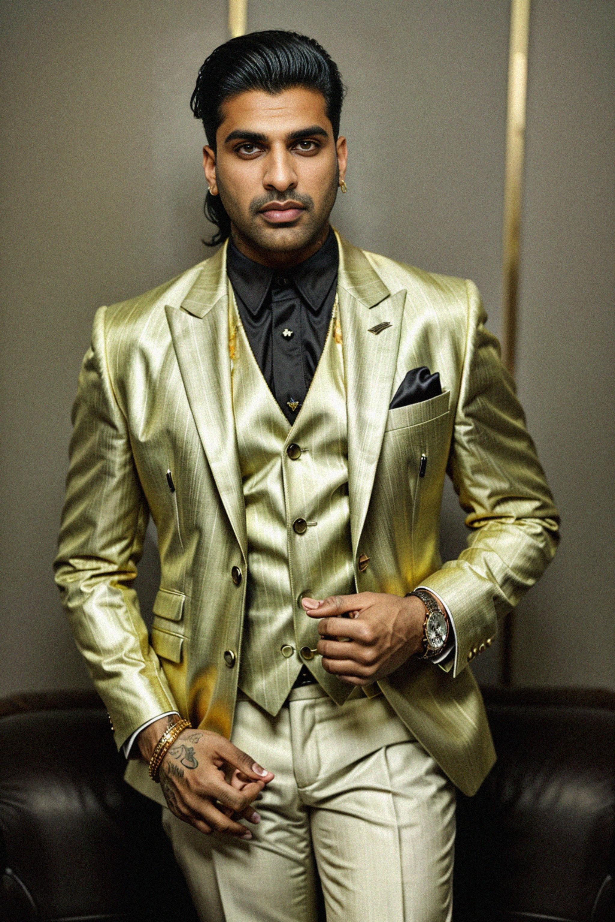 beautiful model as a mobster, mafia, mafia outfit, tailored suits, chunky gold jewelry, mafia aesthetic, flashy, glamorous, luxury, loud, Goodfellas, The Sopranos, Mob Wives, opulence, confidence