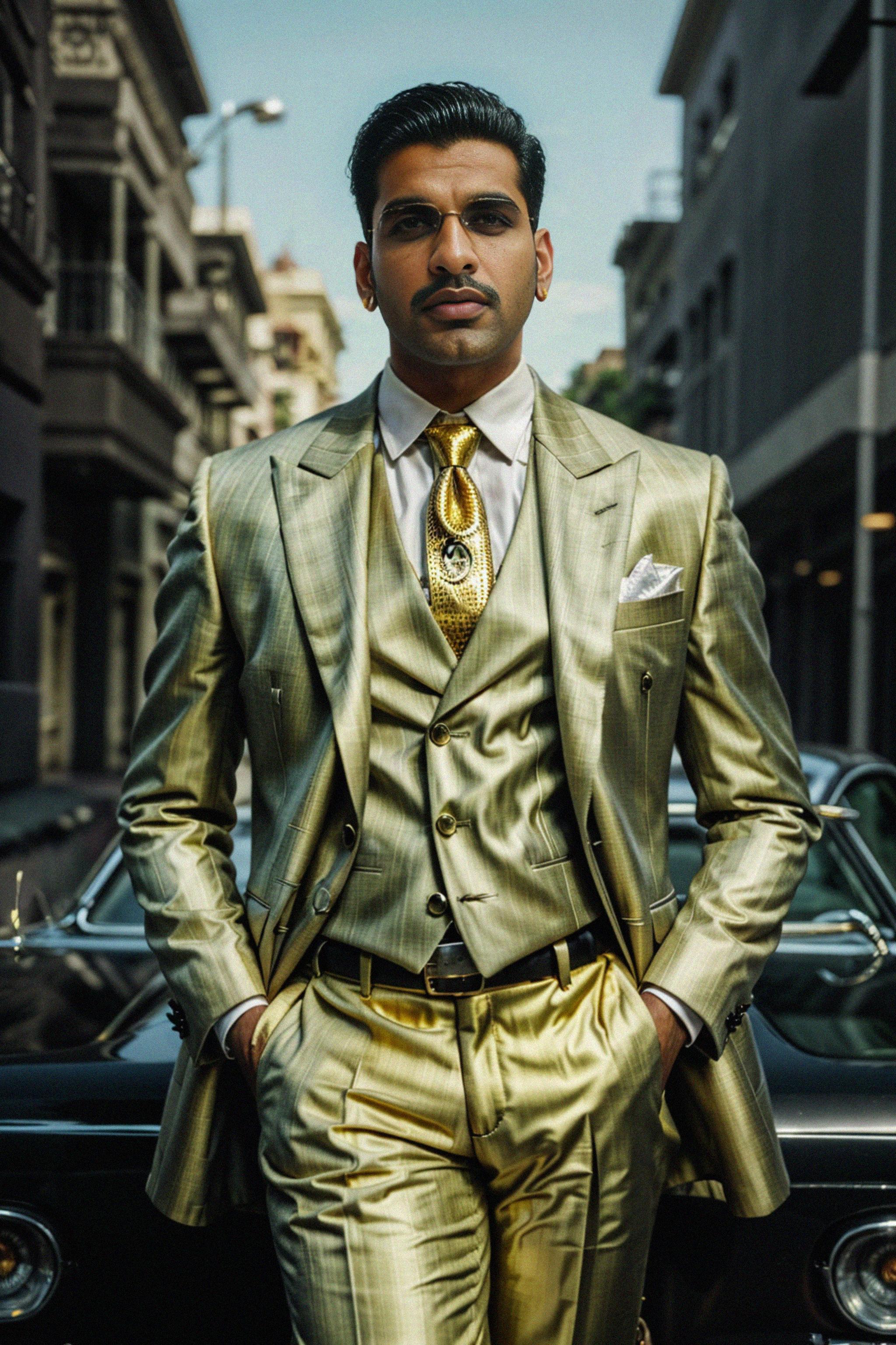 beautiful model as a mobster, mafia, mafia outfit, tailored suits, chunky gold jewelry, mafia aesthetic, flashy, glamorous, luxury, loud, Goodfellas, The Sopranos, Mob Wives, opulence, confidence