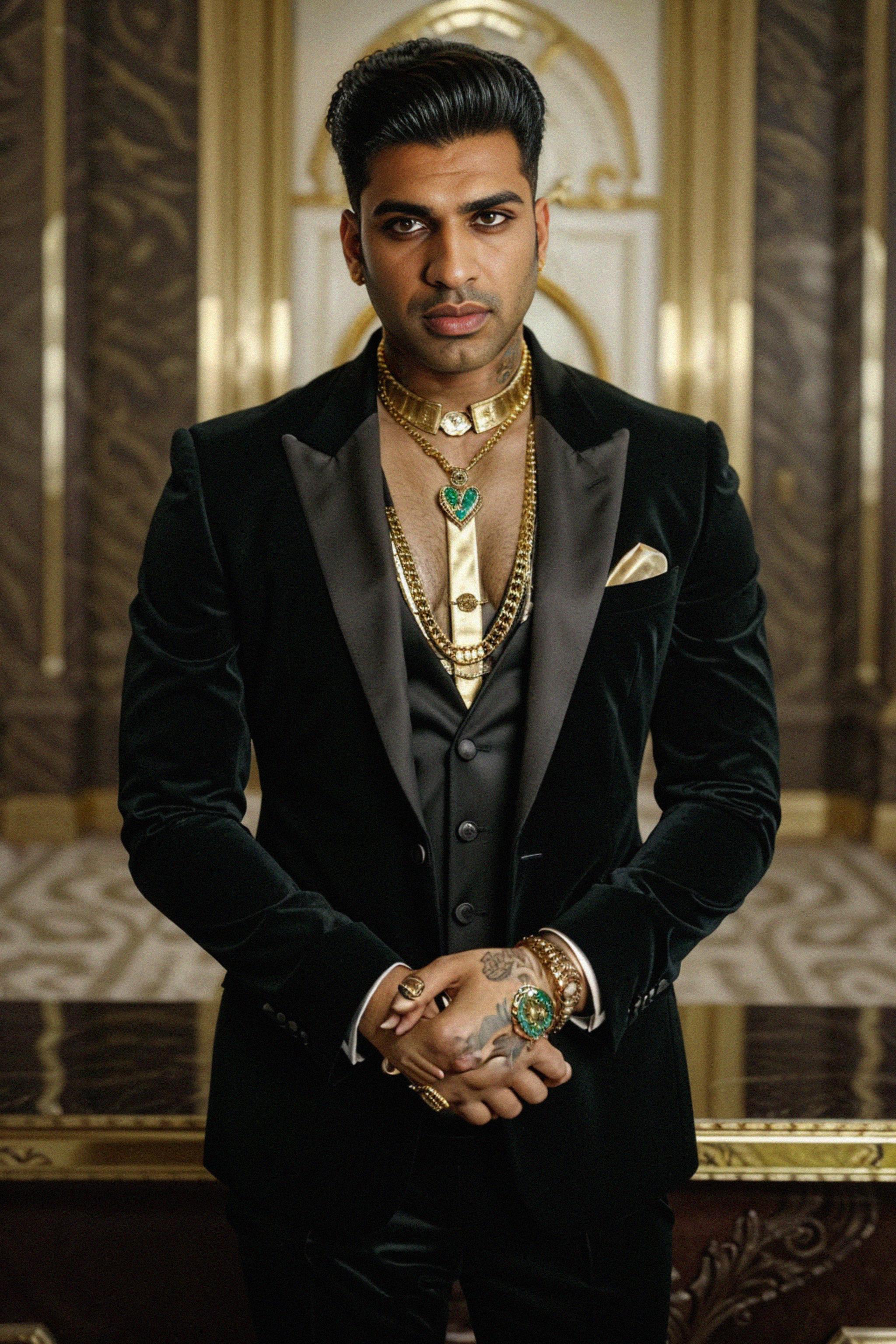 beautiful model as a mobster, mafia, mafia outfit, tailored suits, chunky gold jewelry, mafia aesthetic, flashy, glamorous, luxury, loud, Goodfellas, The Sopranos, Mob Wives, opulence, confidence