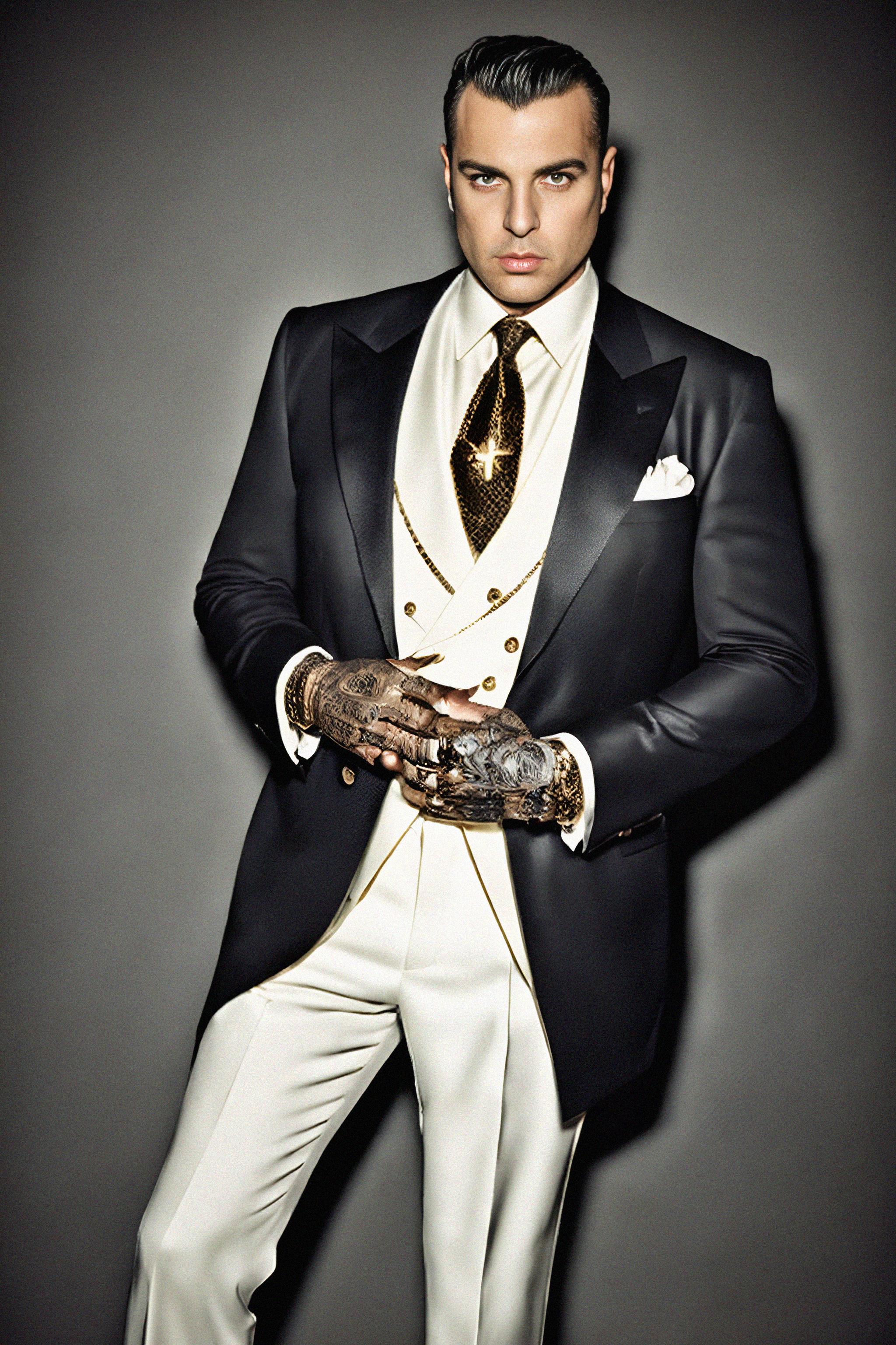 beautiful model as a mobster, mafia, mafia outfit, tailored suits, chunky gold jewelry, mafia aesthetic, flashy, glamorous, luxury, loud, Goodfellas, The Sopranos, Mob Wives, opulence, confidence