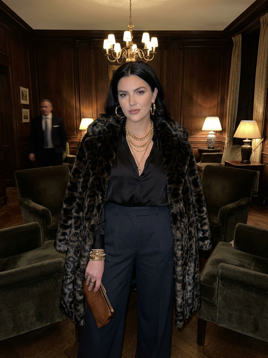 beautiful model as a mobster, mafia, mafia outfit, faux fur coats, chunky gold jewelry, mafia aesthetic, flashy, glamorous, luxury, loud, Goodfellas, The Sopranos, Mob Wives, opulence, confidence