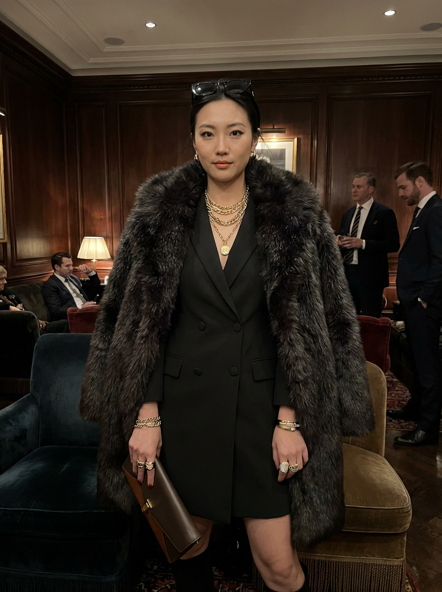 beautiful model as a mobster, mafia, mafia outfit, faux fur coats, chunky gold jewelry, mafia aesthetic, flashy, glamorous, luxury, loud, Goodfellas, The Sopranos, Mob Wives, opulence, confidence