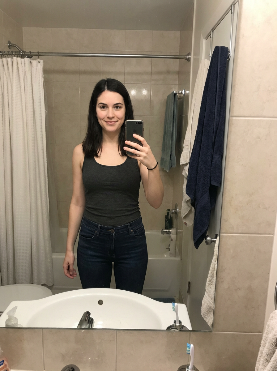 beautiful model taking a selfie in bathroom mirror