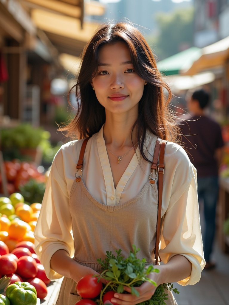 bright-spirited feminine model exploring a local farmers' market in daylight
