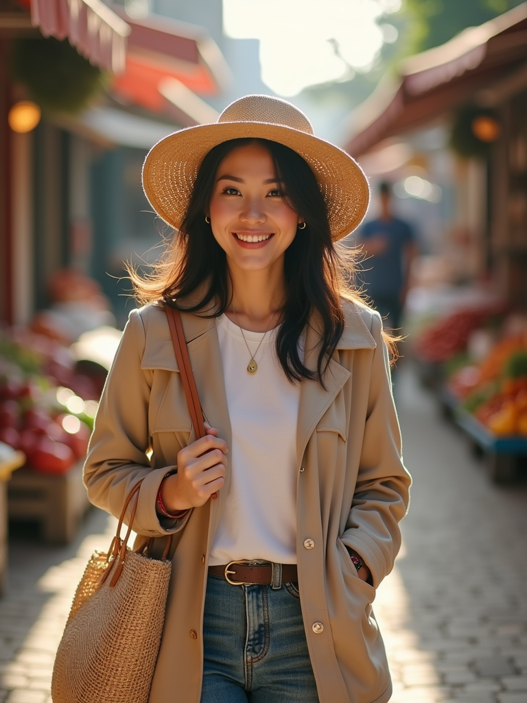 bright-spirited feminine model exploring a local farmers' market in daylight