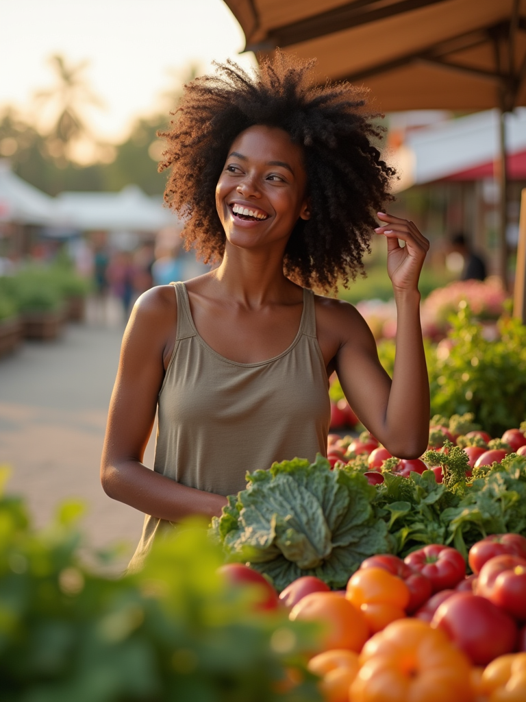 bright-spirited feminine model exploring a local farmers' market in daylight