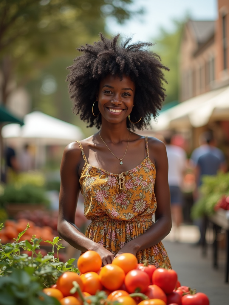 bright-spirited feminine model exploring a local farmers' market in daylight