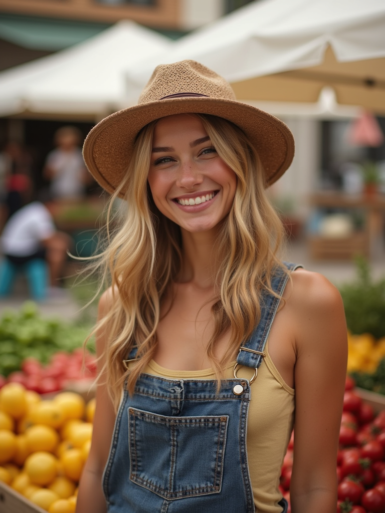 bright-spirited feminine model exploring a local farmers' market in daylight