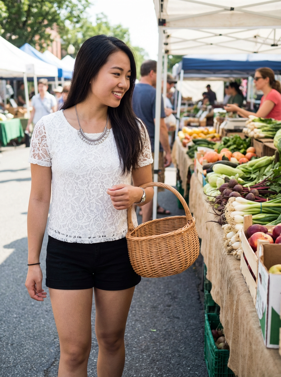 bright-spirited feminine model exploring a local farmers' market in daylight