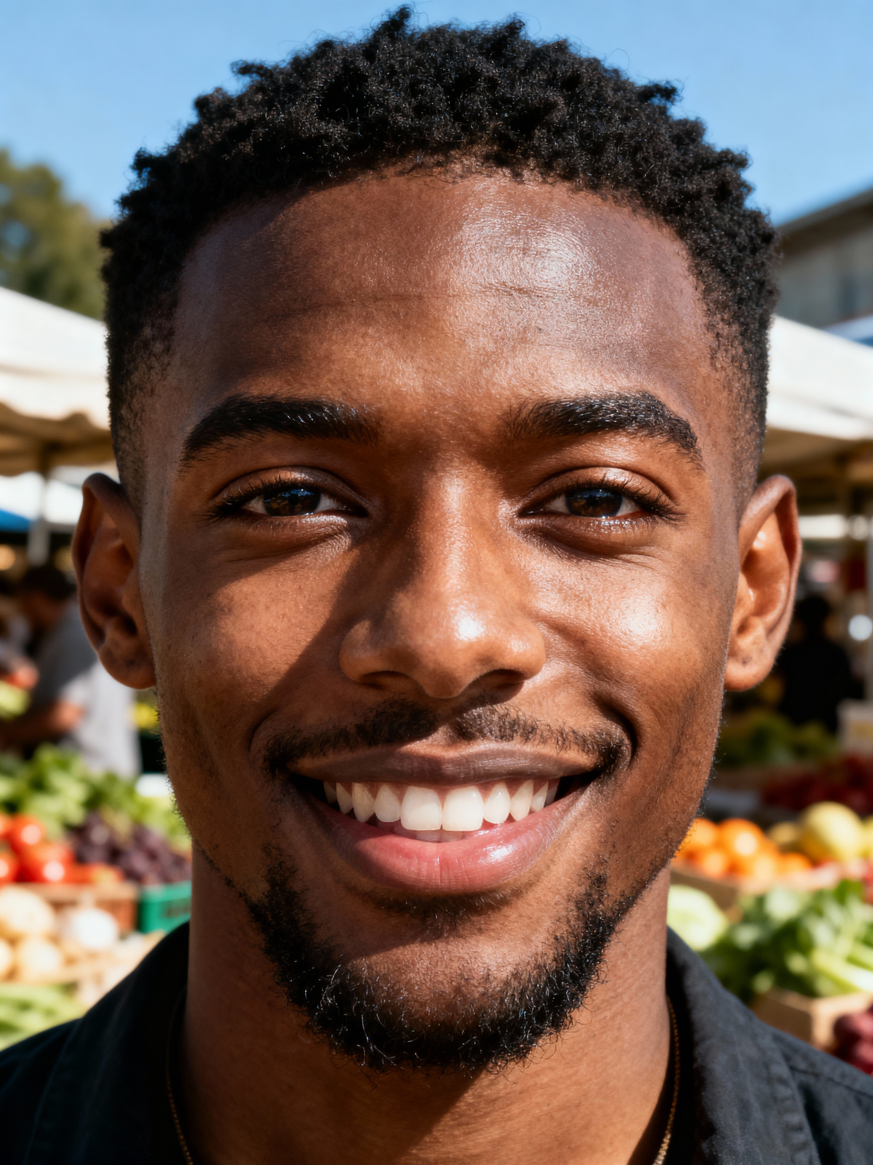 bright-spirited masculine model exploring a local farmers' market in daylight