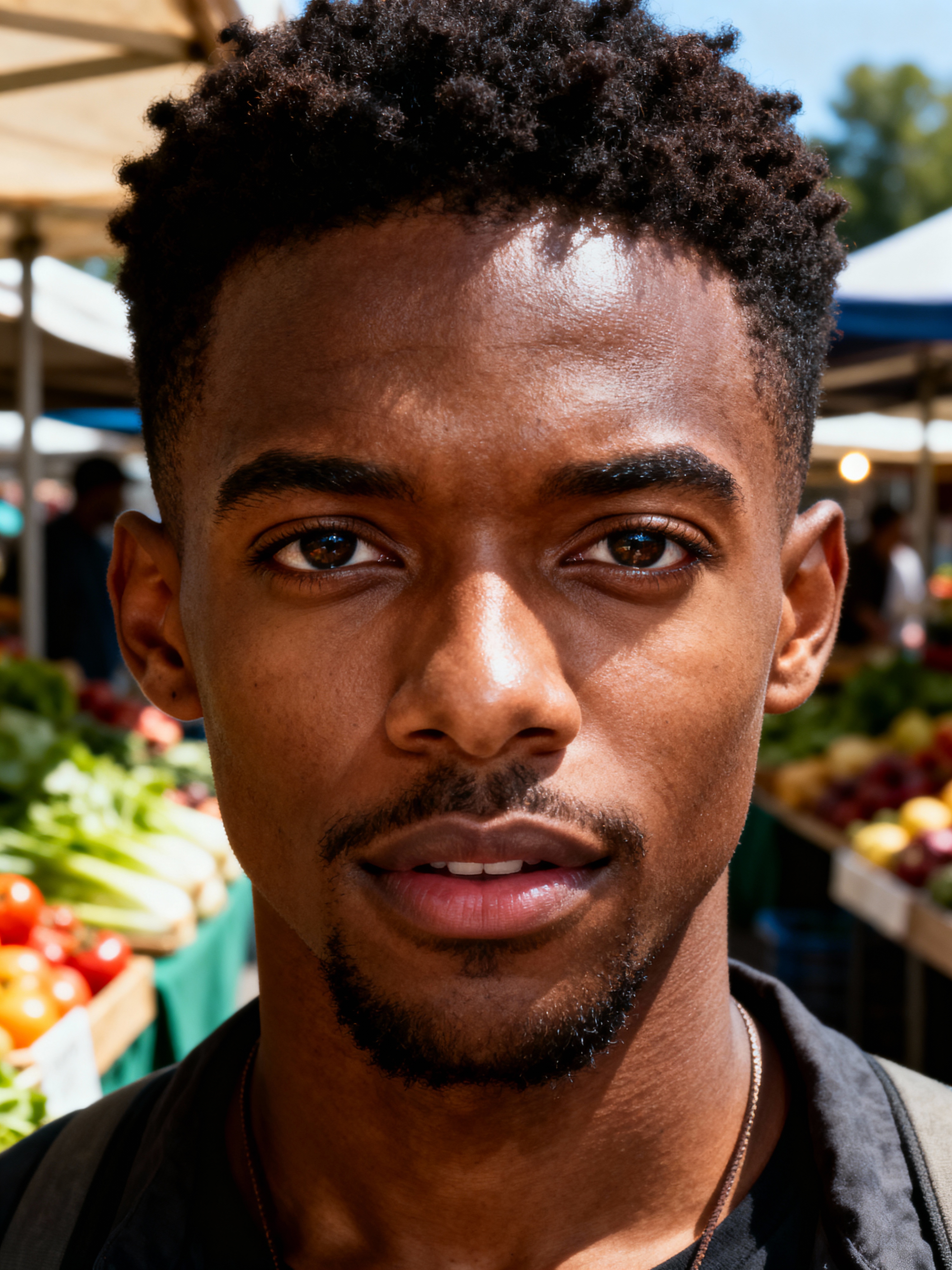 bright-spirited masculine model exploring a local farmers' market in daylight