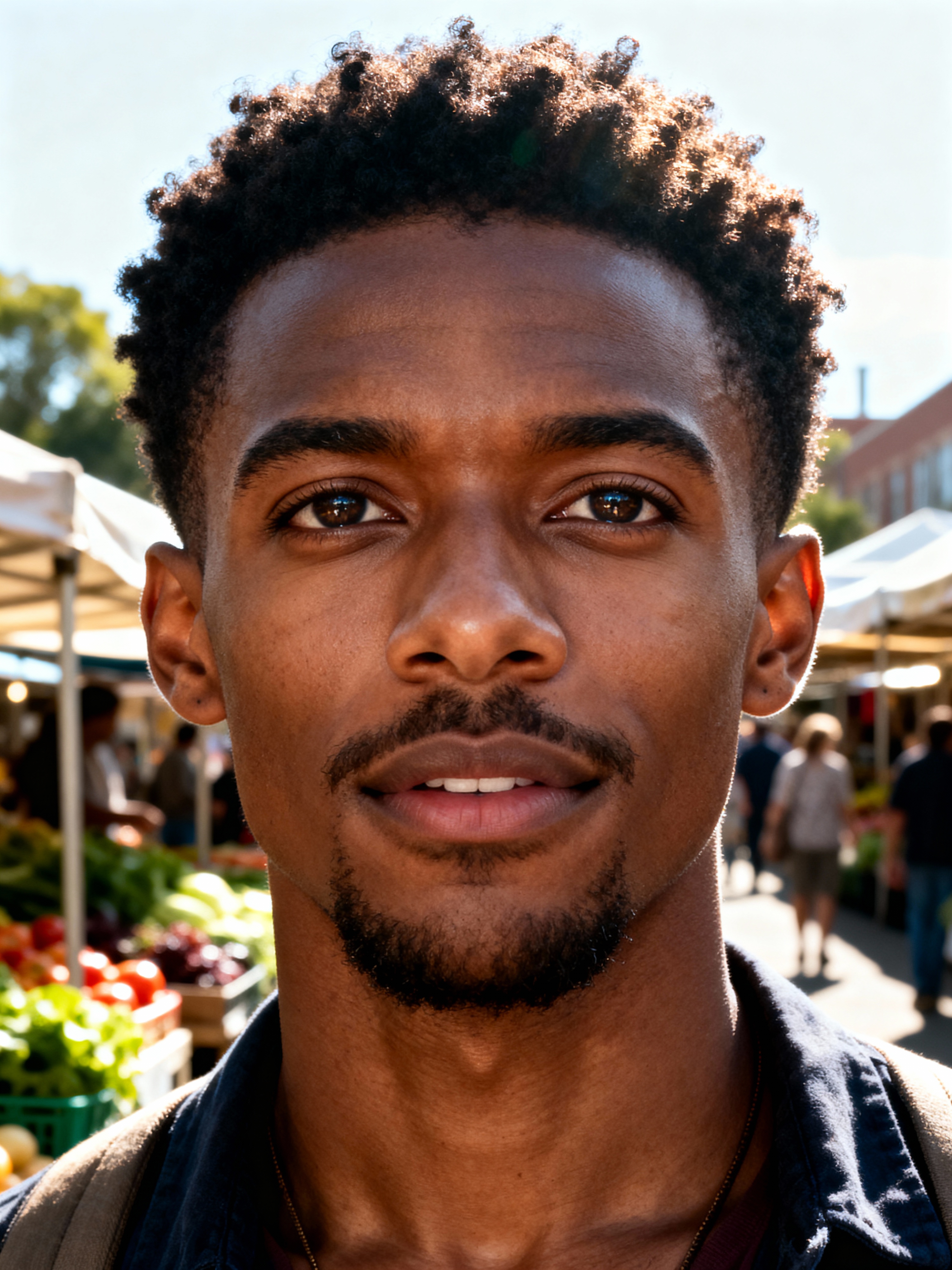 bright-spirited masculine model exploring a local farmers' market in daylight