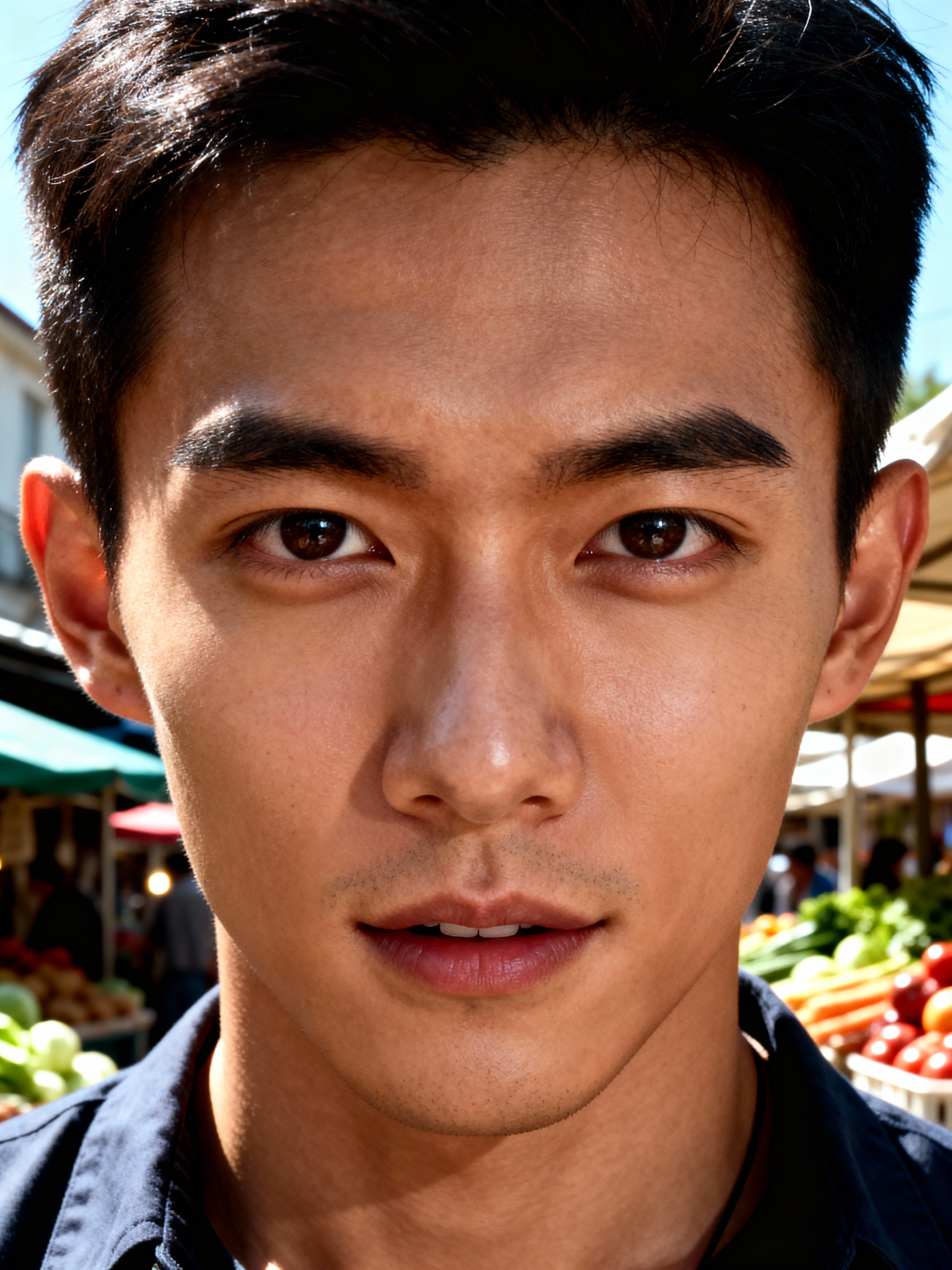 bright-spirited masculine model exploring a local farmers' market in daylight