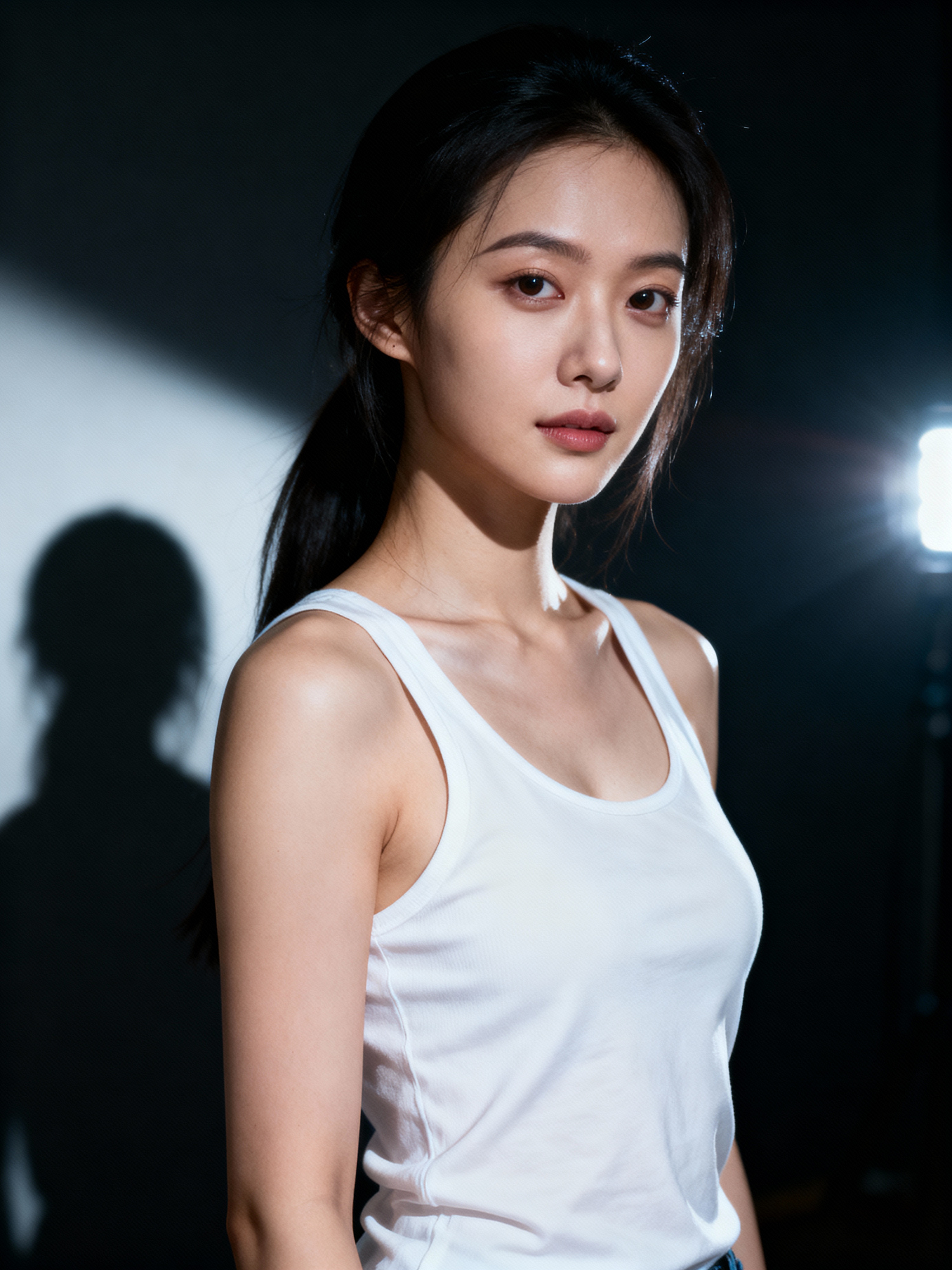 casual profile headshot photo of model for instagram. hasselblad photography. white tanktop.