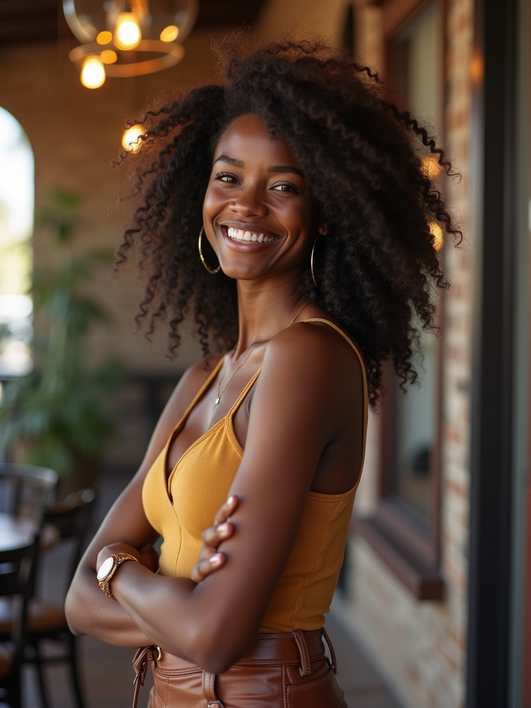 confident feminine model dressed in smart-casual attire, ready for a dinner date