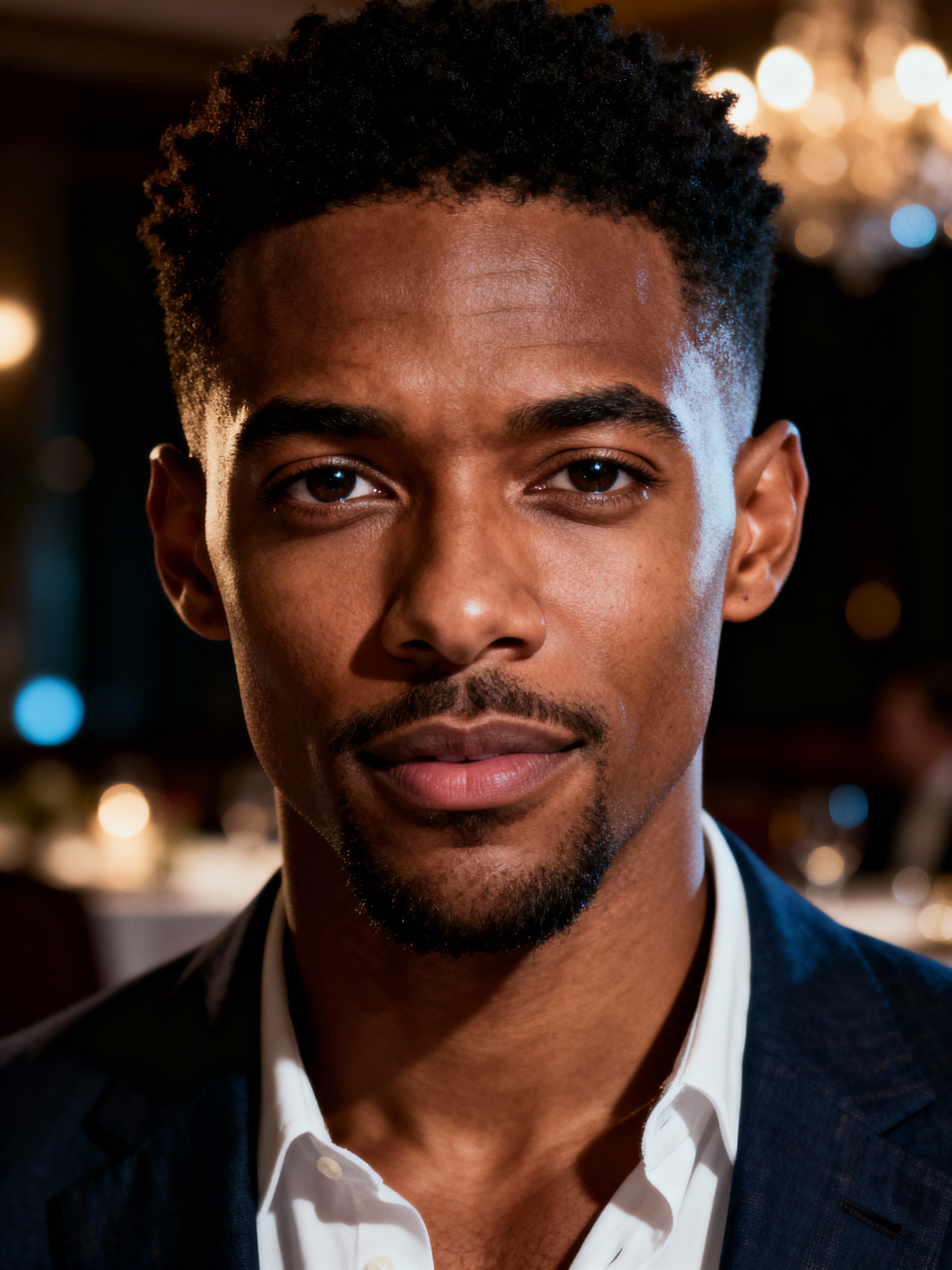 confident masculine model dressed in smart-casual attire, ready for a dinner date