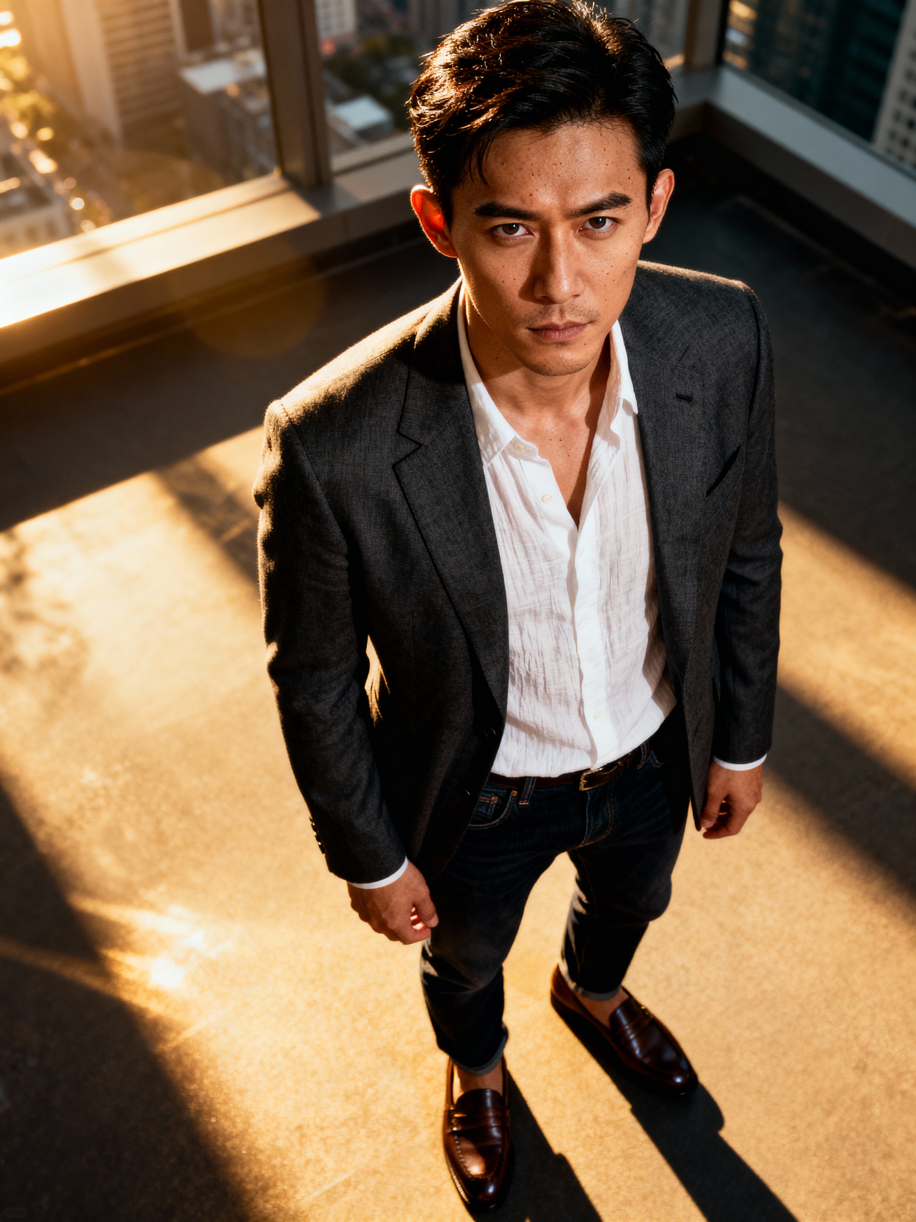 confident masculine model dressed in smart-casual attire, ready for a dinner date