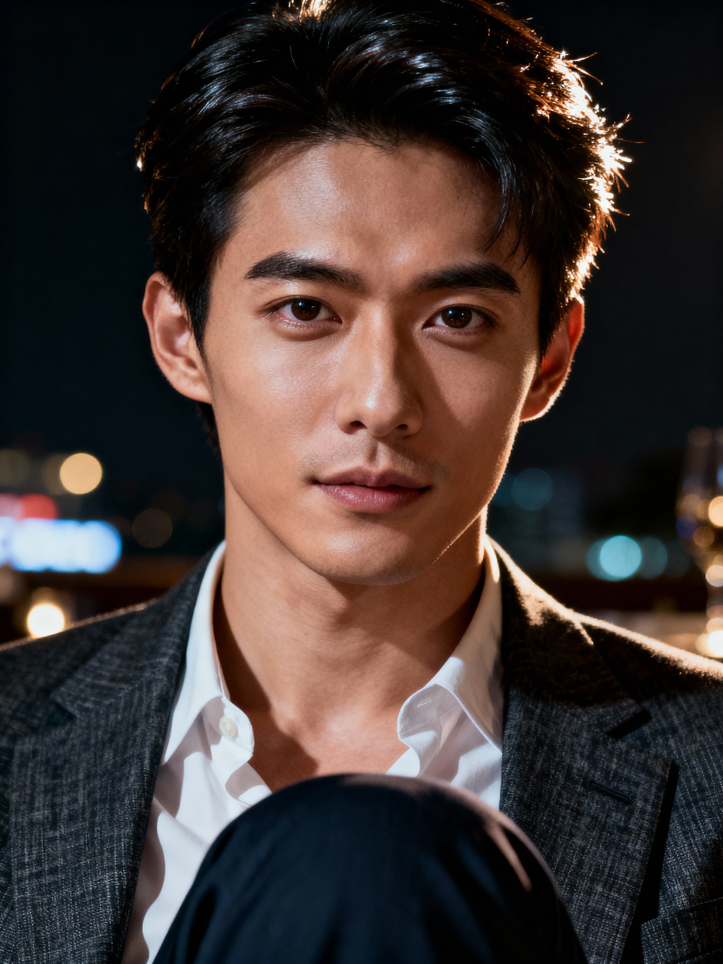 confident masculine model dressed in smart-casual attire, ready for a dinner date