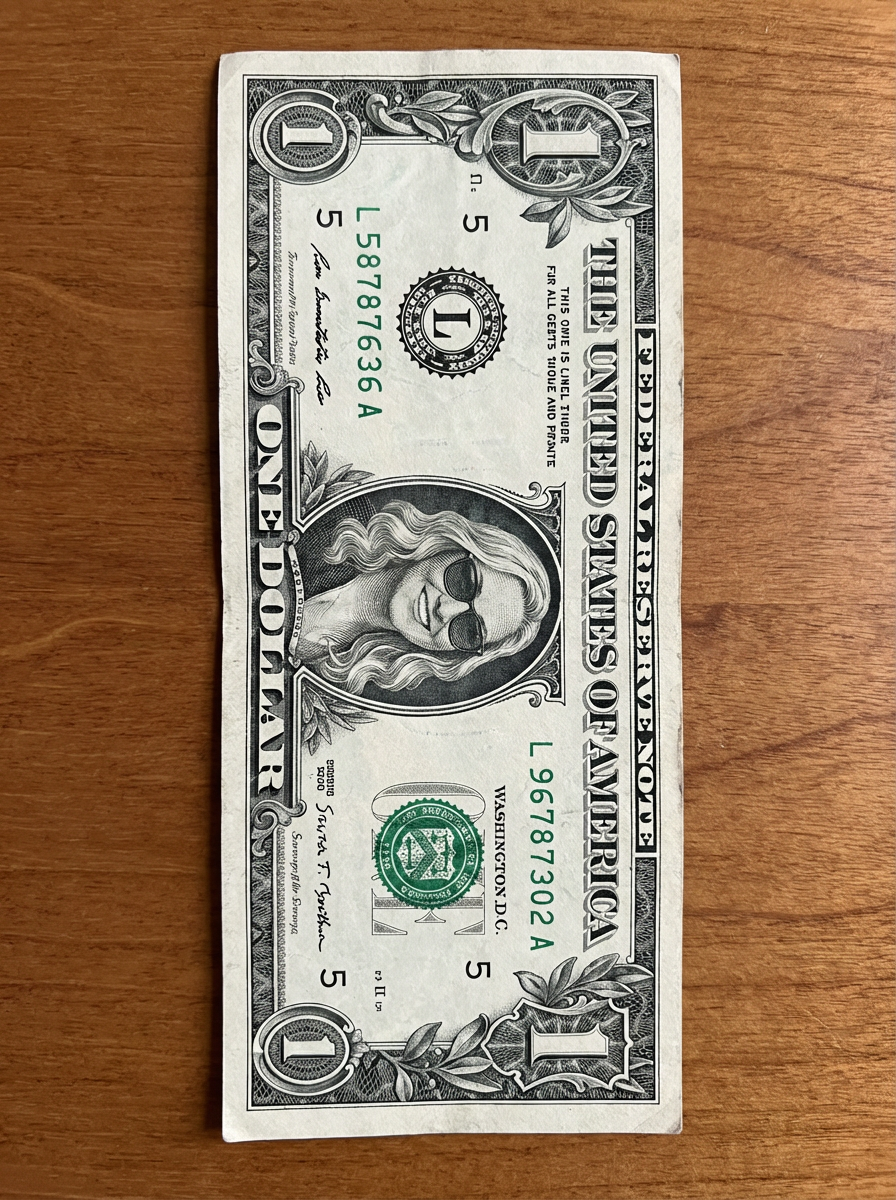 Dollar bill with model face printed in the center