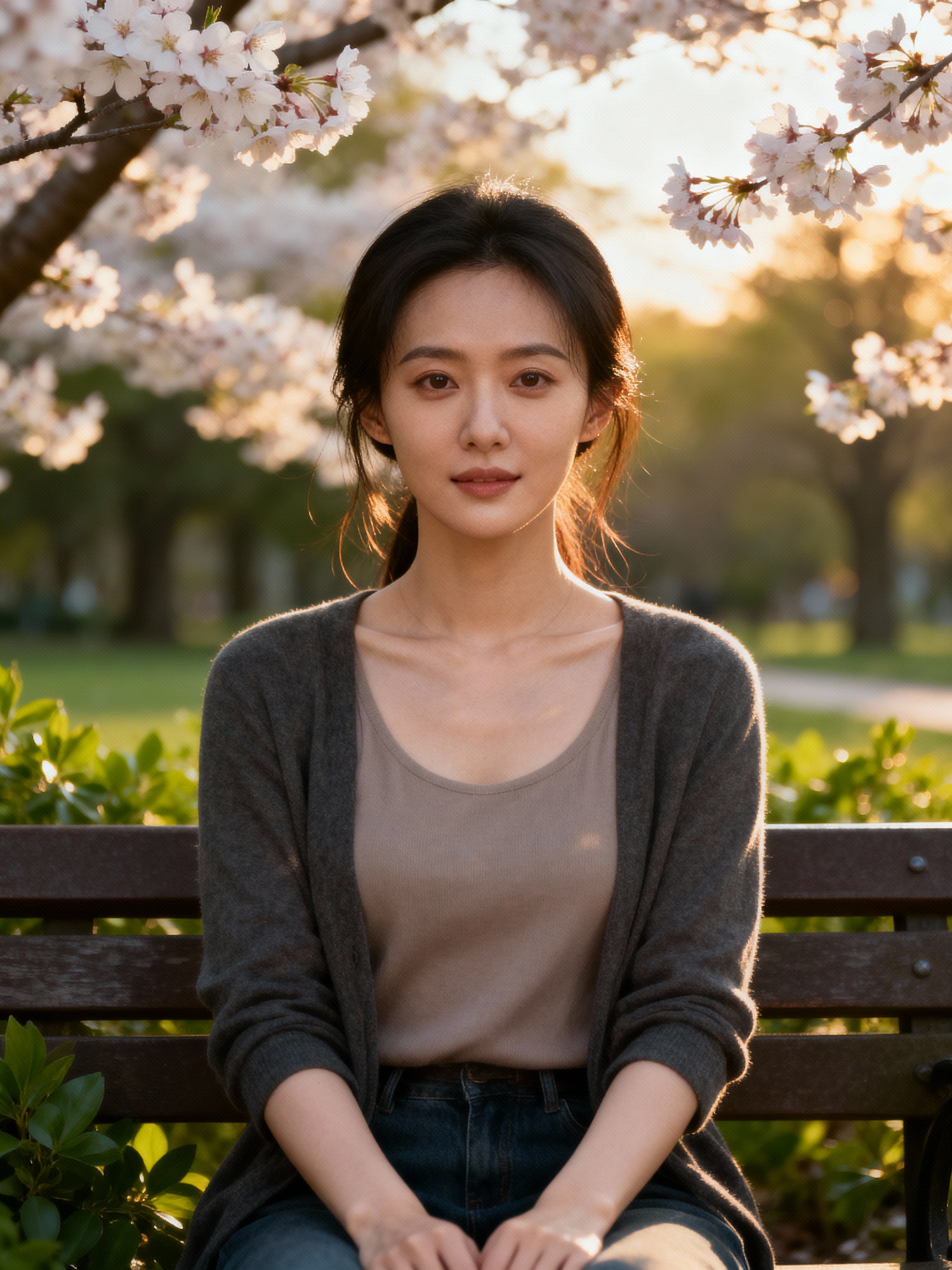 down-to-earth feminine model hanging out in a quiet park, enjoying nature
