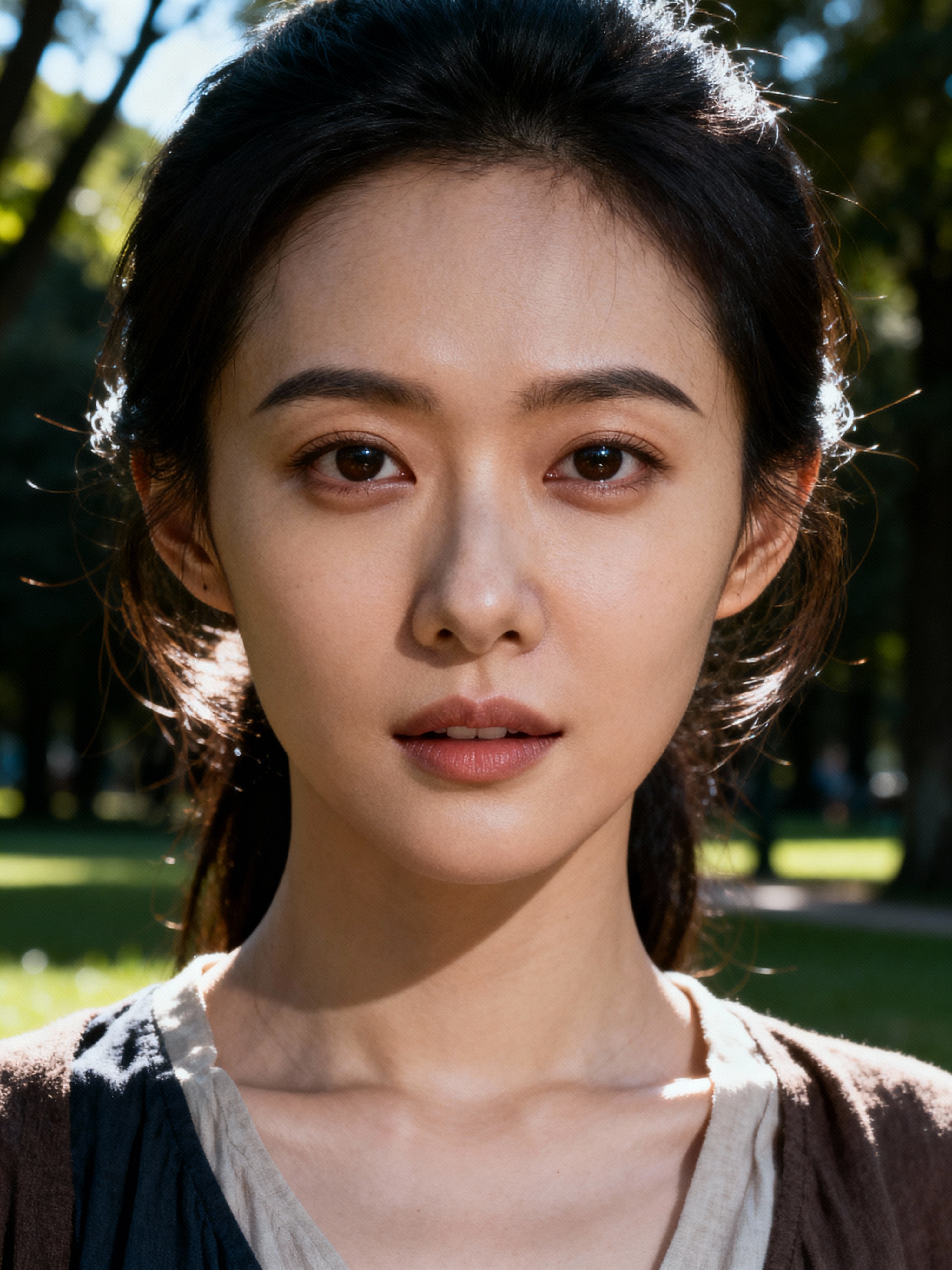 down-to-earth feminine model hanging out in a quiet park, enjoying nature