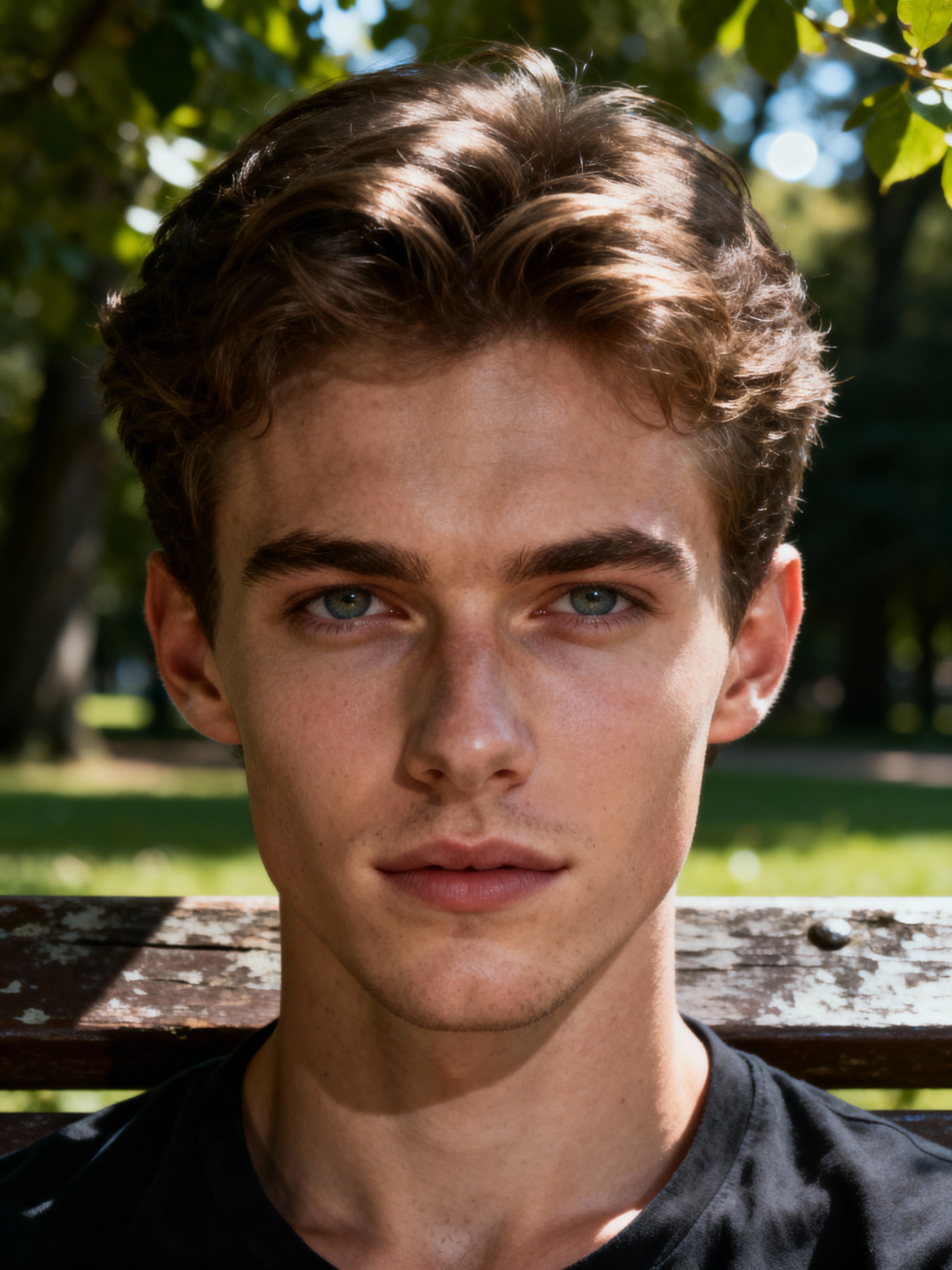 down-to-earth masculine model hanging out in a quiet park, enjoying nature