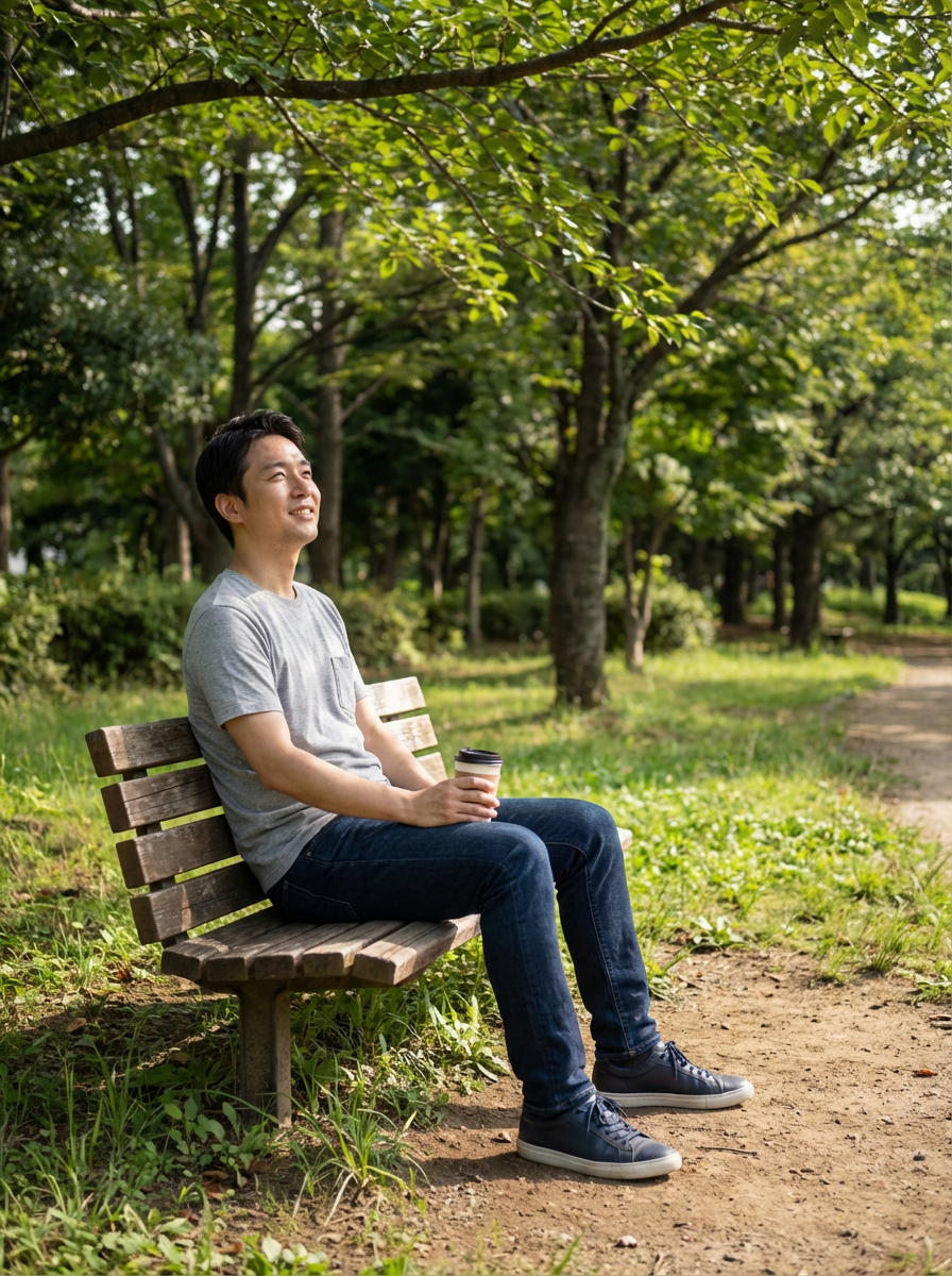 down-to-earth masculine model hanging out in a quiet park, enjoying nature