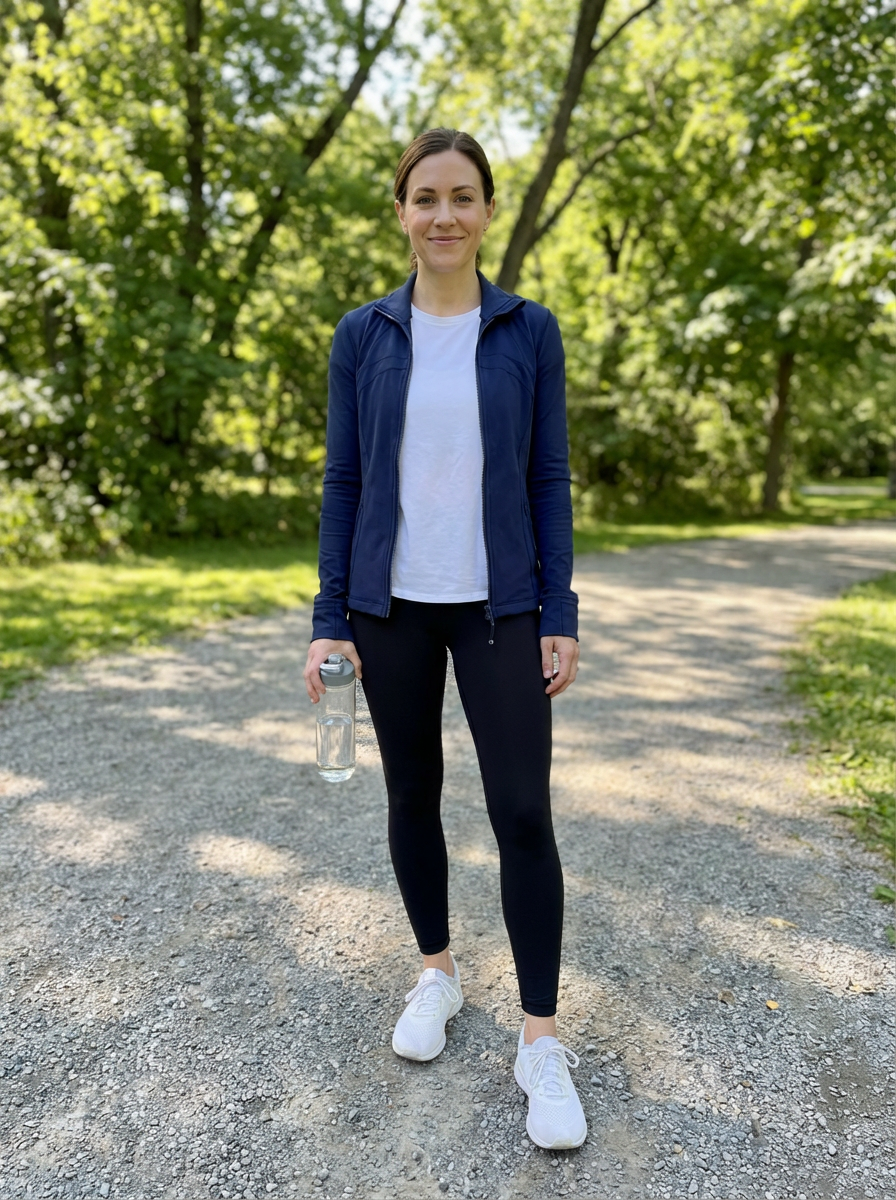 else{model ready for walk in park date, athletic cute outfit, sneakers, water bottle , outdoor path with trees}