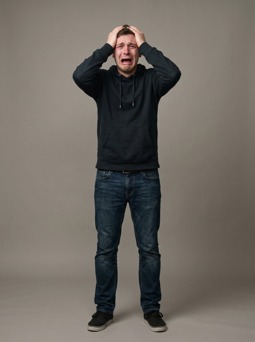 exaggerated crying model, blank background