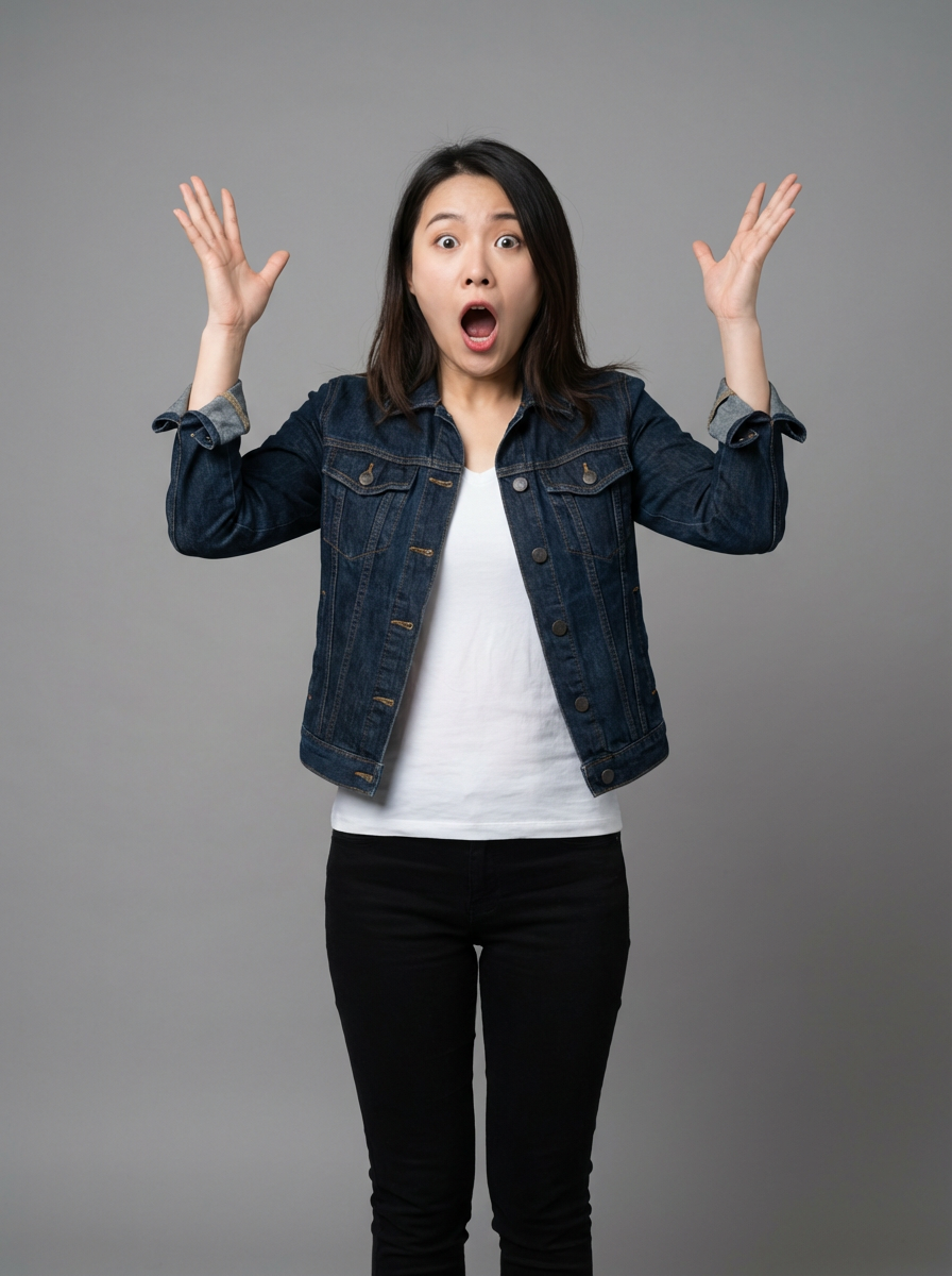 exaggerated surprised shocked shock astonished startled stunned surprise model, blank background