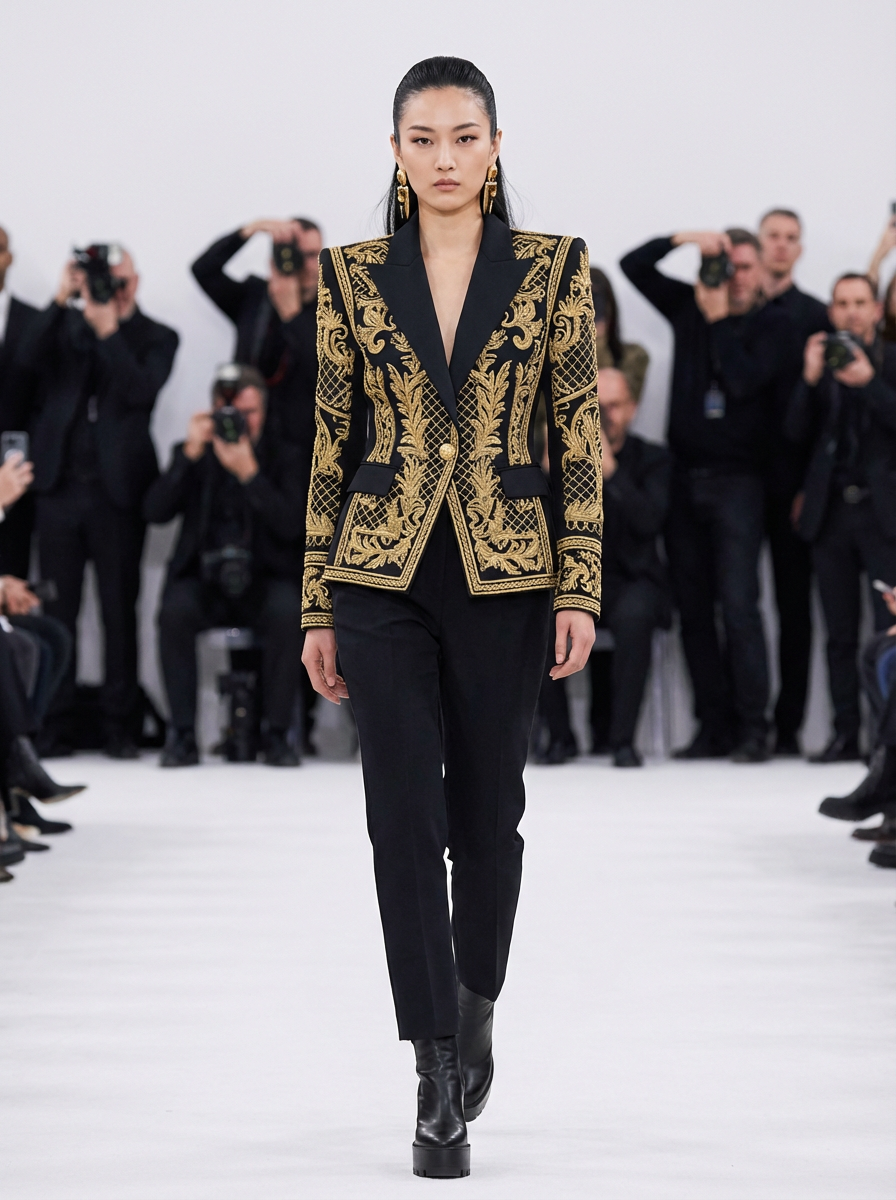 face of model fashion model in fashion show clothes, official balmain editorial
