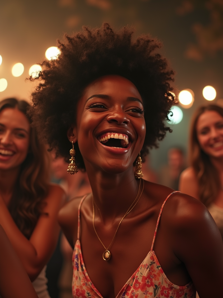 feminine model laughing and hanging out with friends