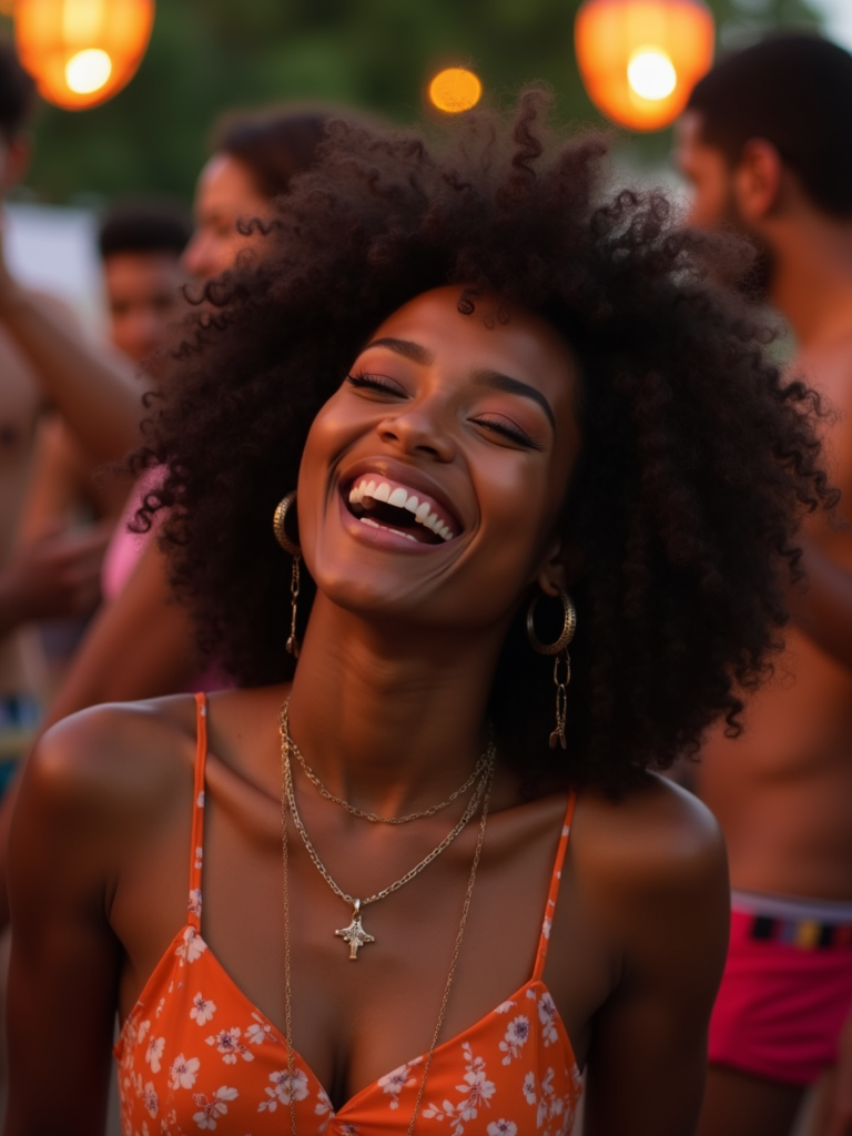 feminine model laughing and hanging out with friends