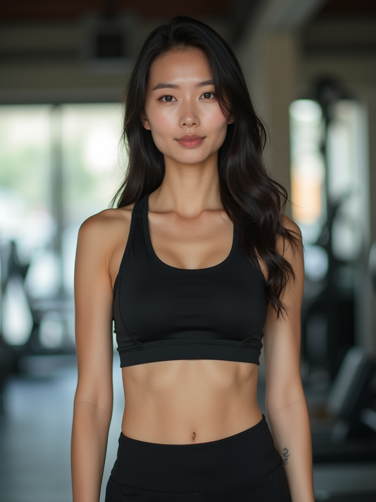 feminine model wearing yoga pants or and sports top in the fitness gym