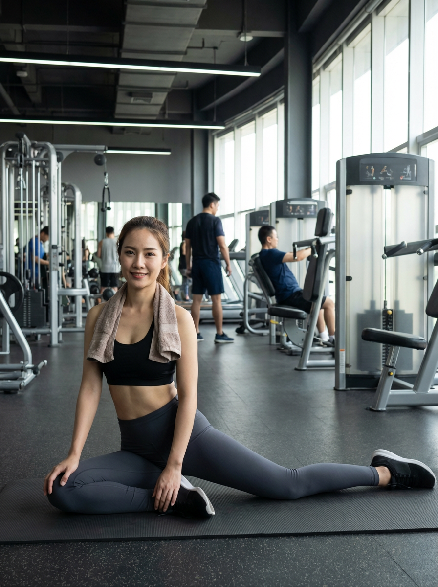 feminine model wearing yoga pants or and sports top in the fitness gym