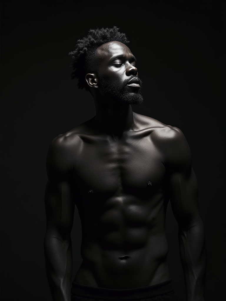 Full body artistic portrait of model. Full creative lighting setup. Experimental photography.