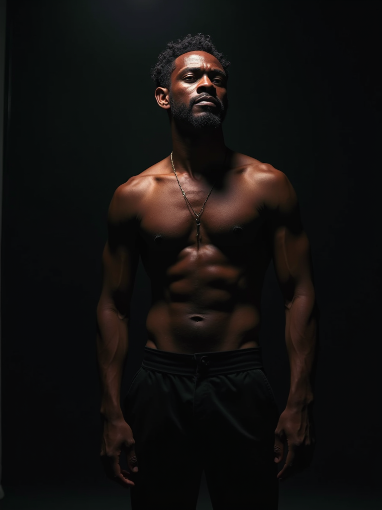 Full body artistic portrait of model. Full creative lighting setup. Experimental photography.