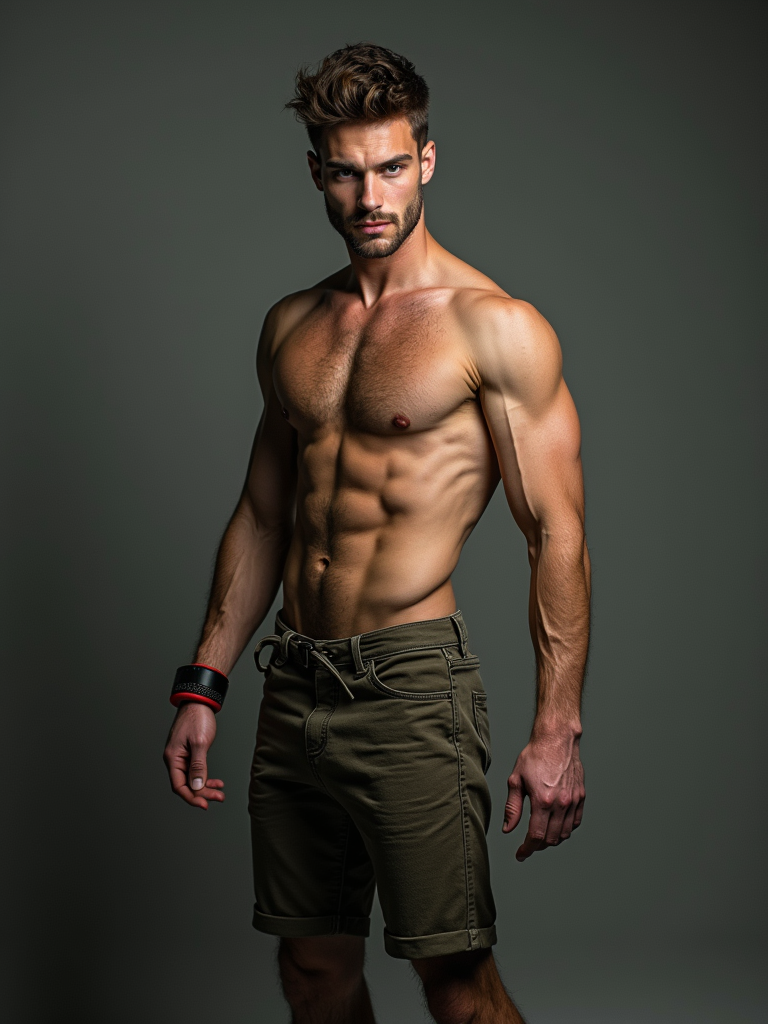 Full body artistic portrait of model. Strong stance, artistic composition. Fine art photography style.