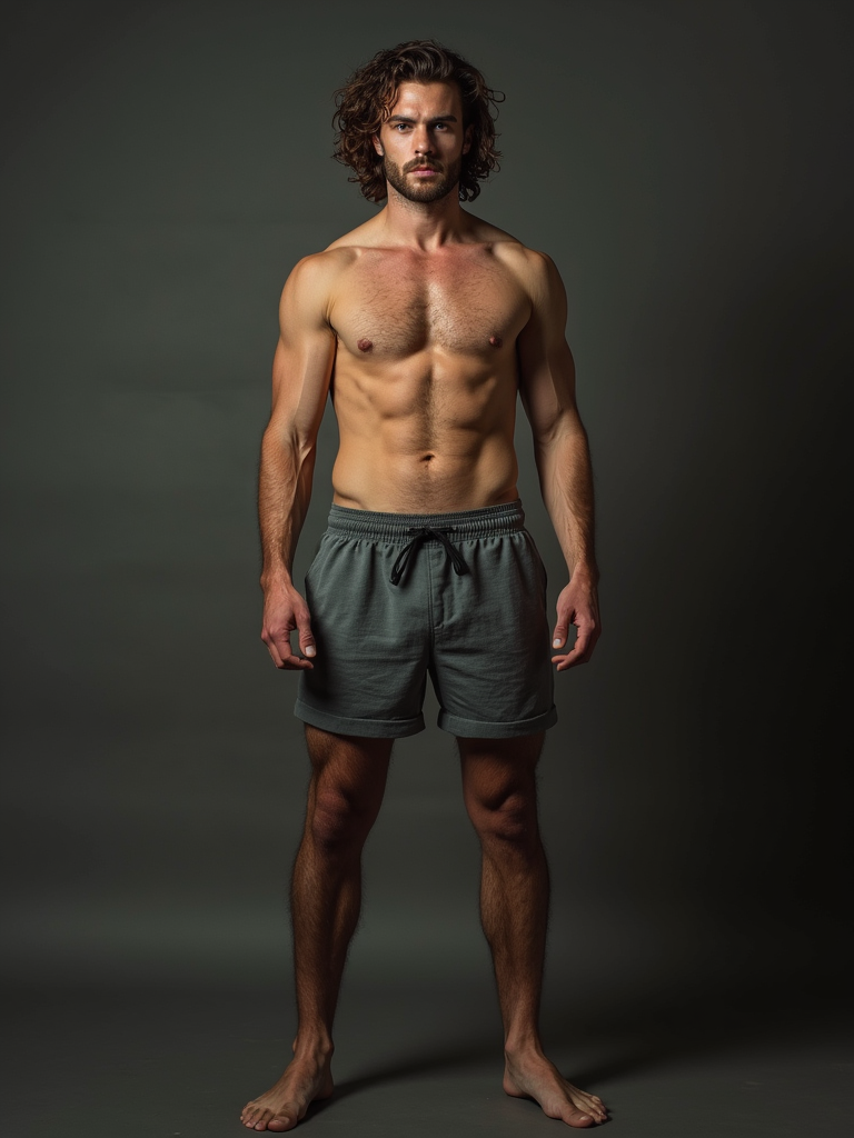 Full body artistic portrait of model. Strong stance, artistic composition. Fine art photography style.