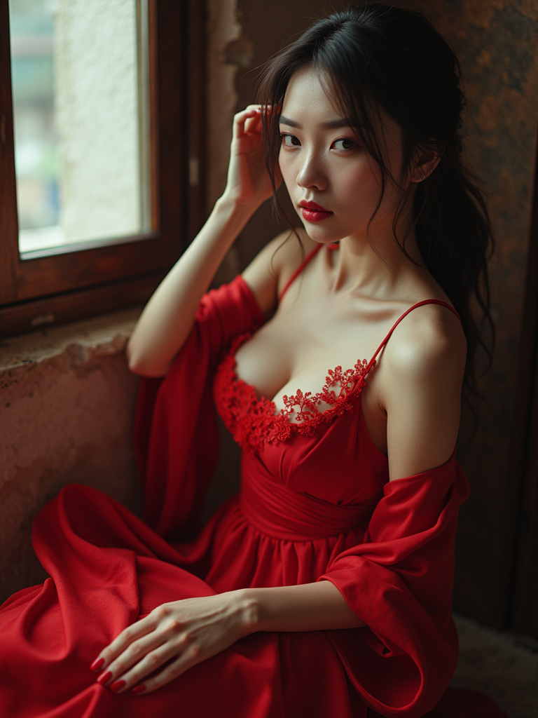 Full body artistic portrait of model. Complete artistic composition, seductive pose . Experimental photography.