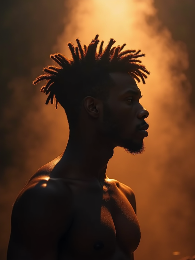 Full body dreamy portrait of model. Full silhouette in dreamy lighting. Magical atmosphere.