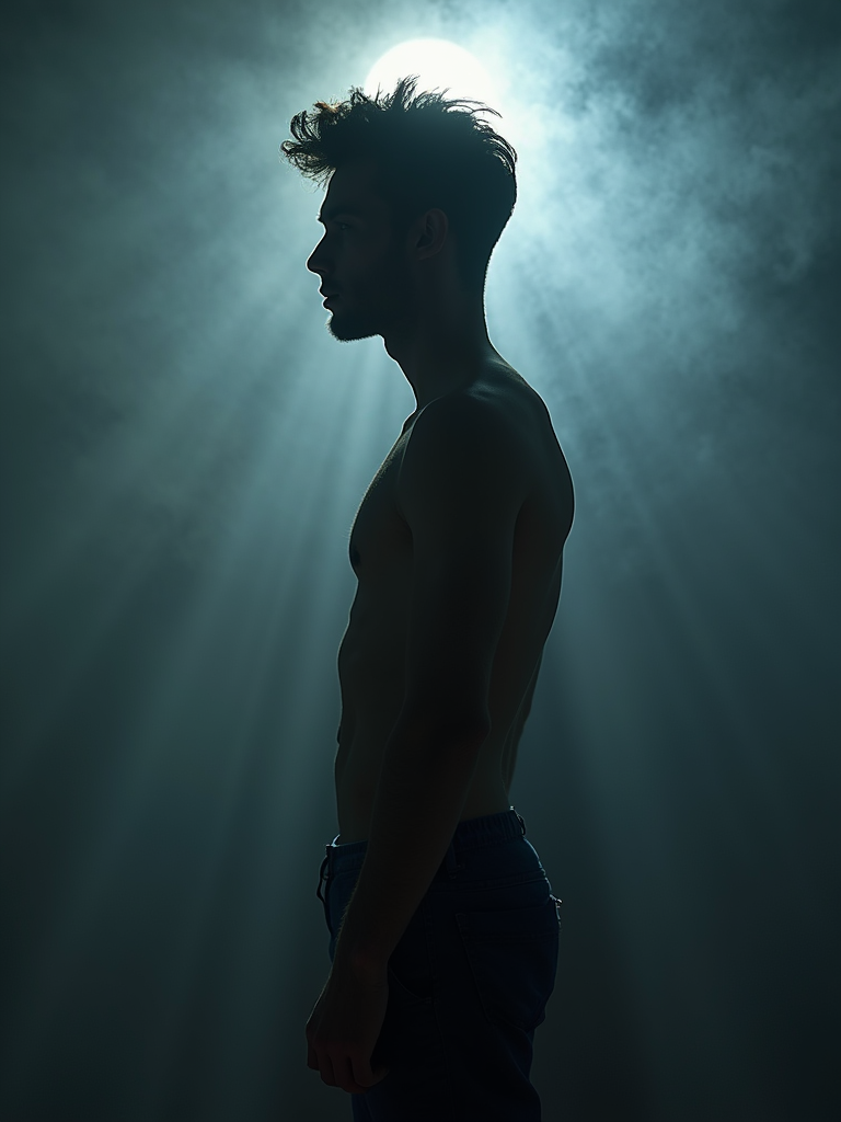 Full body dreamy portrait of model. Full silhouette in dreamy lighting. Magical atmosphere.