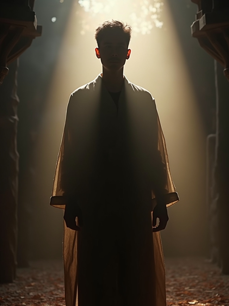 Full body dreamy portrait of model. Full silhouette in dreamy lighting. Magical atmosphere.