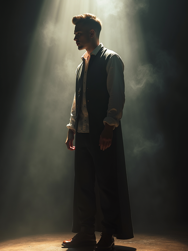 Full body dreamy portrait of model. Full silhouette in dreamy lighting. Magical atmosphere.