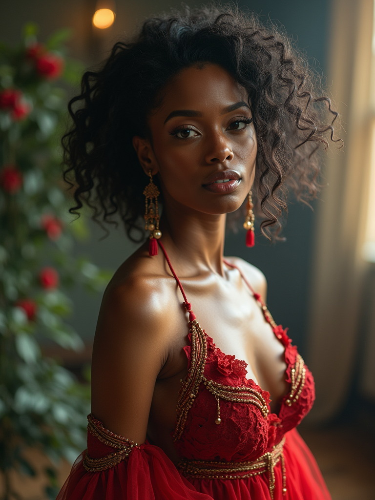 Full body dreamy portrait of model. Complete ethereal look, flowing outfit, alluring pose . Magical atmosphere.